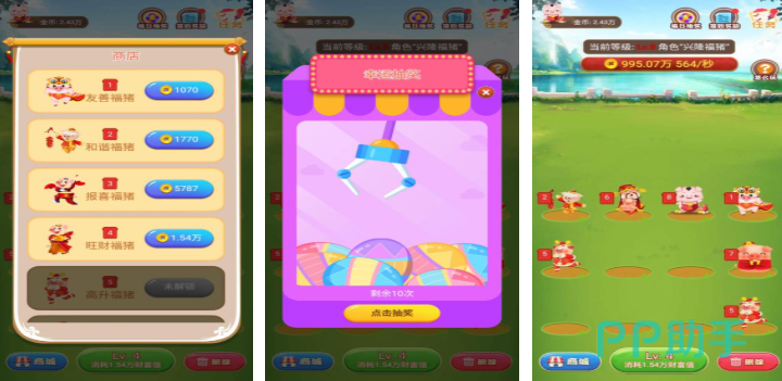 这款养猪游戏一如既往采用了合成养猪的游戏概念,扮演养猪大亨的你可以跟形形色色的小猪进行交互,拖动合成的游戏概念也会让养猪过程更为沉浸,小猪猪造型各异带来的观赏效果也比较不错,各种生动卡通的小猪猪登场等待着大家随意养成,日常任务和图鉴收集这些很有意思的玩法呈现也极为有趣。
