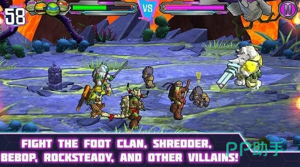 手游背景完全符合原作的忍者神龟世界观,游戏中会遇到古怪的怪兽,还有反派来攻击玩家。大家要做的就是收集服饰,用来获取更多忍者动作和关卡,以此控制神龟反击对手。在这里玩家可以和波普这些反派对战,手游还配备了好看的动画片段,系统中共有五个关卡,玩家可以选择四只神龟中的任何一个进入关卡开始战斗。