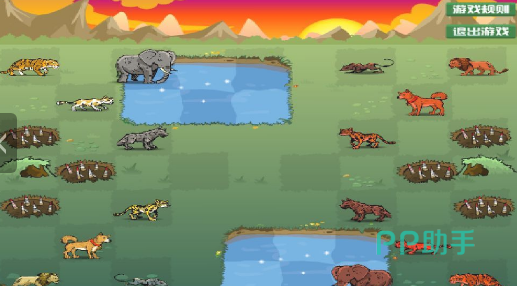 这款魔改斗兽棋没有改动经典款的规则,像不同动物之间的相互克制关系,全都保留着。游戏里新增了思维的设计,每次对弈的走向都不一样,老虎,大象这类棋子各有各自的作用。喜欢斗兽棋的玩家,都能在这款游戏里指挥小动物对弈,魔改后的斗兽棋内容和森系的画面背景相结合,棋子也都是小动物外观,符合斗兽棋的主题。