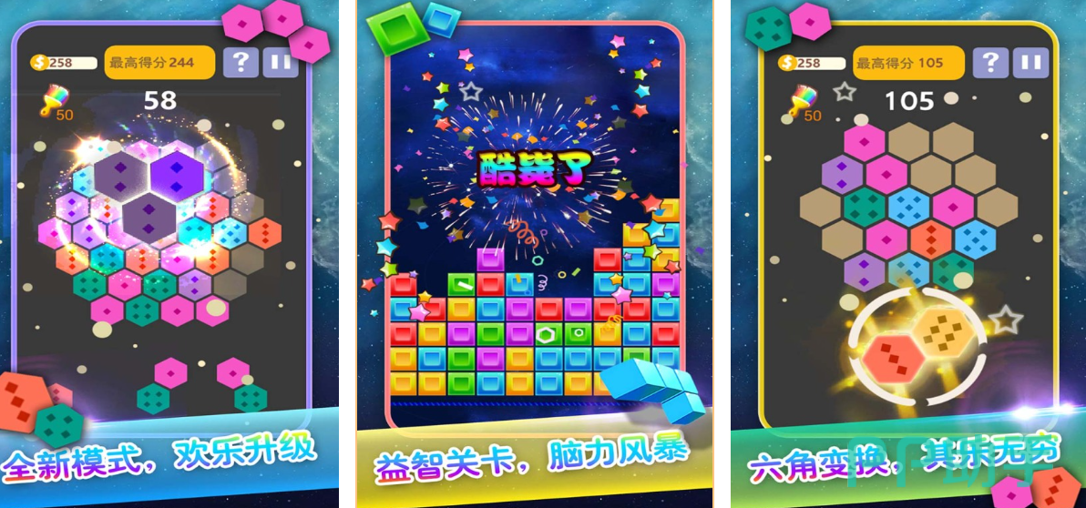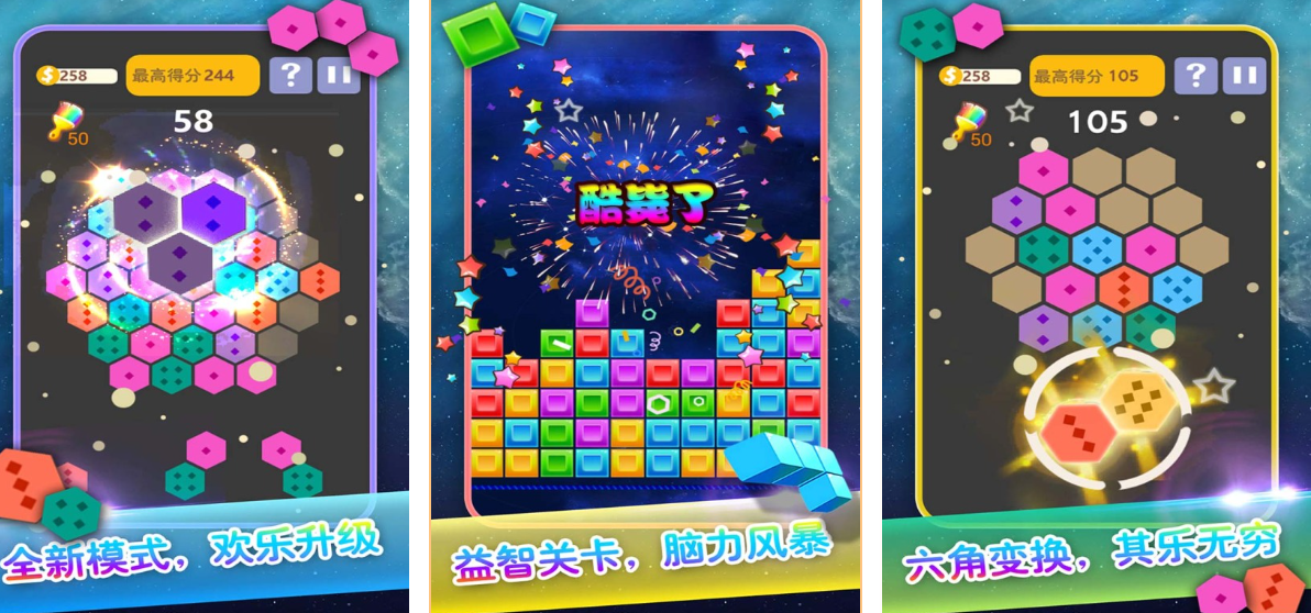 在极简几何美学无尽演变过程中,蜂巢结构稳定、多向消除的策略深度一起构成益智游戏史上一道璀璨的篇章。那么高人气的六边形消除老游戏有哪些?这类游戏所具有的魅力不是依靠视听特效的堆砌,而是对空间填充逻辑、多向连击判定和全局预判眼光进行极致挖掘。这类游戏的玩法从基础的整行消除到复杂的嵌套组合,每一个六边形色块的放置都关系到棋盘生态的延续。