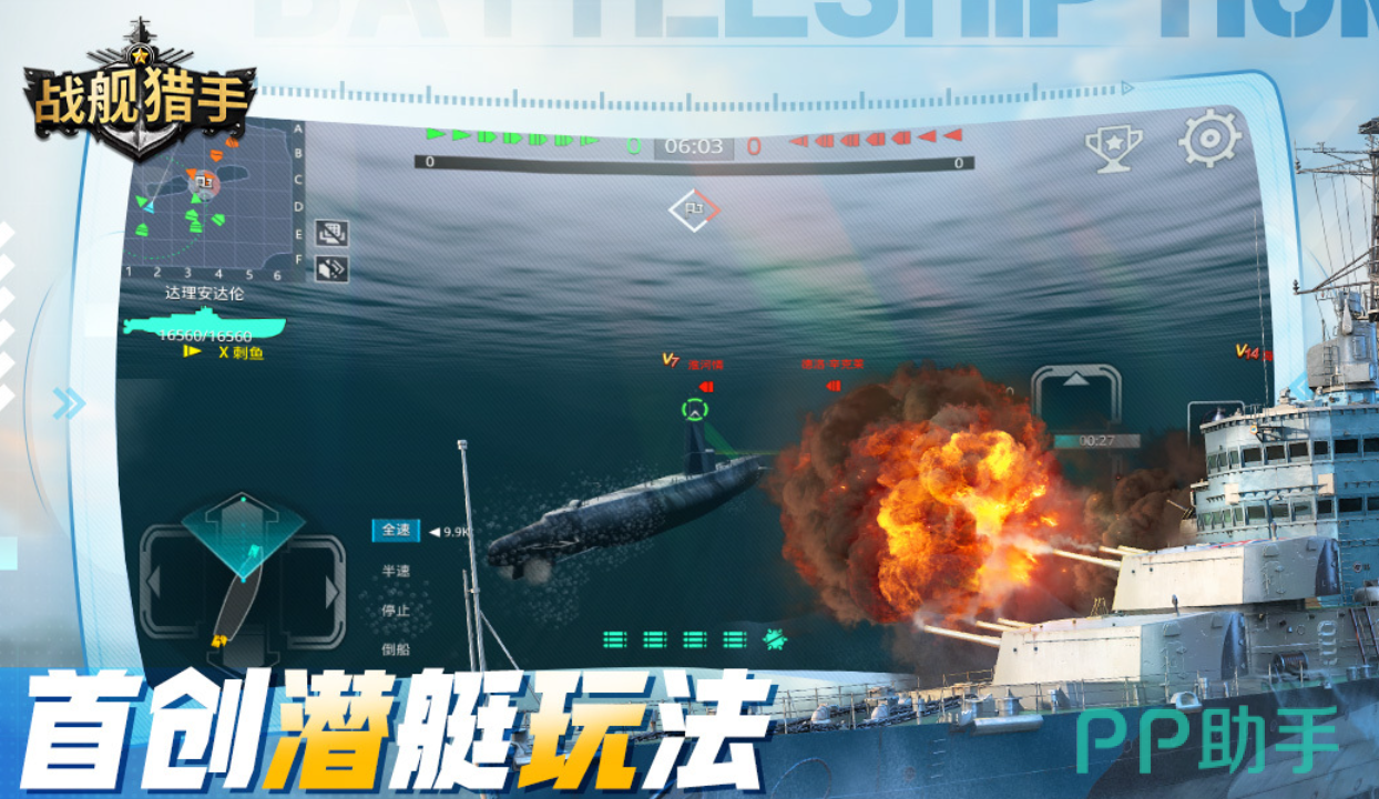 战舰猎手也是款使用了3D引擎技术开发的模拟海战战争游戏,首创的潜水艇视角和高互动性策略玩法乐趣无穷,建模纹理比较立体生动能让海战过程更爽,炮火连天的战场气氛塑造像极了真实的海战,游戏规则简单易懂能轻松感受海战带来的快感,军舰数量众多还有无数潜水装备可以获取,战争手游爱好者一定别错过这款硬核海战APP。