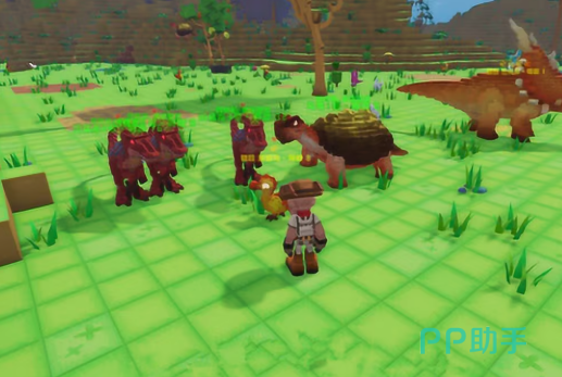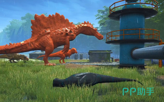 《恐龙岛:生存进化》游戏一开始你什么都没有,流落在一个荒凉的恐龙岛屿上,核心玩法就是活下去,你需要砍树捡石头,搭建住所,制造工具,还要打猎寻找食物,随着时间推移,你不仅能驯服恐龙帮你干活,还能用它们的基因进行研究和强化,你可以用找到的材料做出各种各样的东西,从简单的矛到复杂的自动防御设施,让你的基地变得越来越安全,游戏世界会随着你的行为慢慢发生变化。