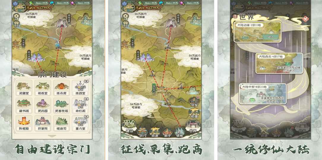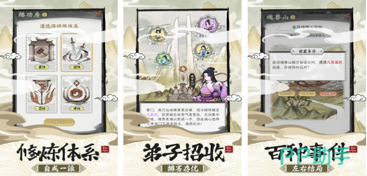在这款仙侠类手游中大家会见证一个不一样的修仙宗门,这是款拥有经营建设类玩法的仙侠手游,扮演修真门派掌门的你需要招募弟子,并尝试开发各种各样的修真体系,自成一派的修真互动玩法让本作的趣味性更高,百余种随机事件的加持提供的沉浸感也不错,修真武器和法宝自由更新解锁趣味性更强。