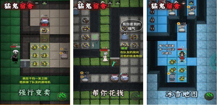 本作是加入了恐怖元素和学校主题背景的塔防类手游,主要地图设定在校园宿舍之中,超多恶鬼也会尝试入侵你的宿舍,放置一些自动挂机战斗的武器就可以轻松对抗恶鬼,废墟、冰雪主题的地图背景也做到了随意解锁,竖屏点触式操作的塔防概念也深入人心,爱玩恐怖游戏或者塔防游戏的朋友可以试试本作哟。
