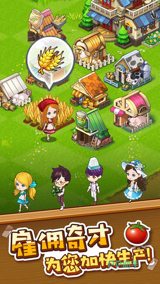 3d卡通的形式呈现了一个巨大无比的田园,从最基础的水果蔬菜种植到动物的养殖,这都需要一定的时间才能够拥有更加丰富的产物。生产出来的所有农产品都可以制作成为苹果派或者是黄油,拿到市场上进行售卖。每一个环节都形成了紧密的关联,打造了一个自给自足的农场。在这些农作物成熟后,均采用了一键采摘的方式,让玩家利用时间去从事其他农场的项目经营。