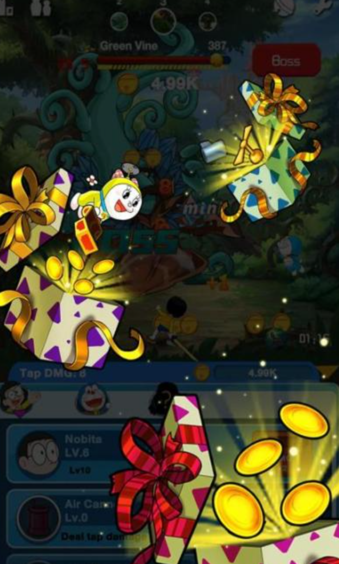 大雄和伙伴们要营救被女巫占领的王国,拯救雪公主。回合制战斗配合动漫元素,经典角色都有专属技能和成长路线,还加入了奇幻角色,丰富了阵容搭配。战斗操作比较简单,点击屏幕就能攻击怪物,收集铜锣烧和钱币用来升级角色。回合制节奏比较舒缓,适合碎片时间玩,角色养成体系也不复杂,战斗里还能用哆啦A梦的神奇道具。