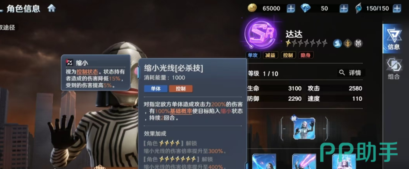 达达的核心战斗范式,围绕“隐匿—蓄势—爆发”三阶段闭环展开。其被动技能“突袭校准”可在己方单位结束隐身状态后立即进入瞄准待发状态,显著提升缩小光线的首段命中率与瞬时伤害转化效率。该设计将隐身动作与输出增益深度耦合,使其在对抗高生存、高机动的单体目标时具备极强的压制优先级。尤其在必杀技“缩小光线”释放过程中,因命中判定稳定、眩晕阈值适中,可有效打断关键技能链并建立控制窗口。