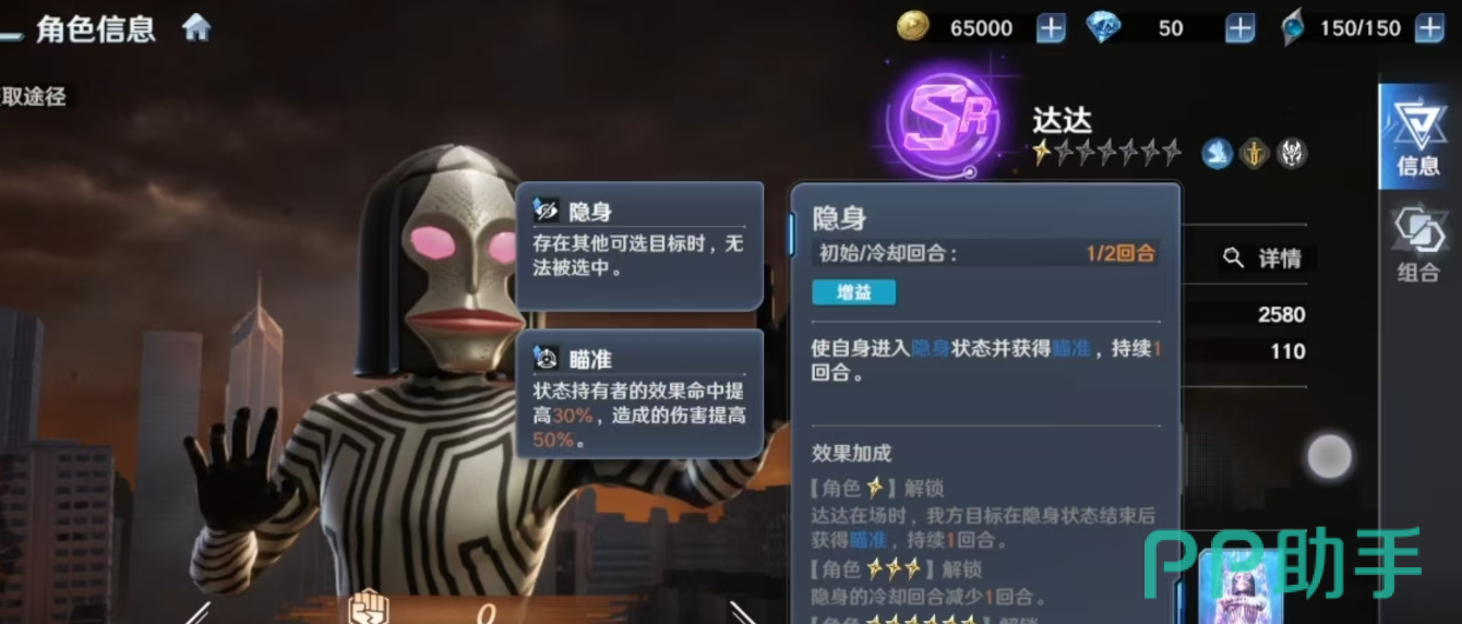实战层面,达达展现出突出的单体锁定效能。作为SR稀有度角色,其群体清场能力有限,但凭借眼部光线技能与高星级加成所强化的眩晕判定,在当前游戏底层判定机制中仍保有较高的打断权重。当开启隐身技能后,角色将进入不可选中状态,并同步自动积攒瞄准效果,形成兼具生存冗余与输出连贯性的战术节奏。这对操作者提出了明确要求:必须精准把握隐身结束后的反击时机,实现控制、位移与伤害的无缝衔接。