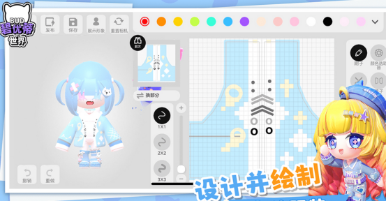 来到碧优蒂的世界,高自由度为核心,融合了职业定制、社交互动等,采用3d卡通风格,可深度定制角色的外观样貌,包括五官、发型等,配备海量服饰及动作可任意挑选,支持自定义形体功能,让所有角色都有极高的个性化,享受多元化魅力,玩家可在这里探索庞大的创作与内容库有上百万款由玩家设计而成的服饰和地图。