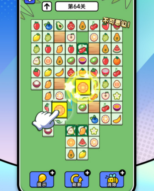 打破传统的消除玩法,以竖屏布局为特色题材,延续连接相同图案消除这样的核心机制,融入了丰富的策略元素,当遇到瓶颈或者高难度关卡时,小伙伴们千万不要退缩,而是利用提示这样的辅助道具,帮助你成功的完成消除,快速通过关卡。