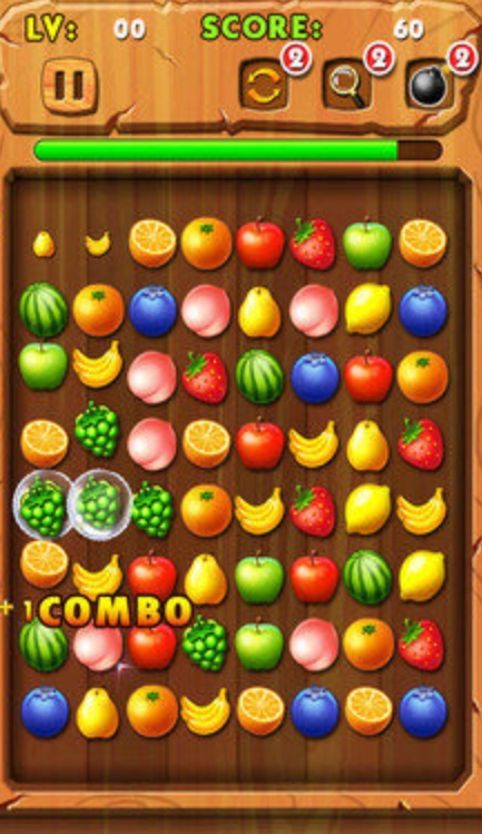 滑动屏幕把三个相同水果,连起来就可以触发消除,连锁效果带着特效一起出现。消除四个水果,可以生成横扫炸弹,能清掉整行或整列,消除五个可能出彩虹果,和任何水果都能配对。关卡里设置多种障碍,需要想办法破解才能过关。每日签到和任务系统,会给奖励,玩得久可以积累不少道具。水果形象做成Q版样式,背景音乐节奏感强。画风偏向明亮色调,消除音效清脆。
