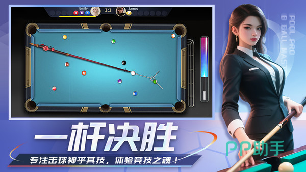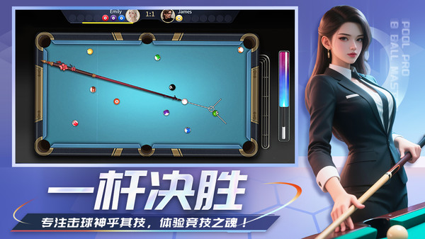 台球电竞联赛是一款支持万人同时在线进行对战的3d台球游戏。3d的技能和纯物理模拟方式,让每一场比赛的真实性都得到了保证。多元化的社交功能,让玩家不仅能够建立属于自己的台球俱乐部,更是可以邀请好友一起来提升台球技术,分享台球比赛中所得到的经验。