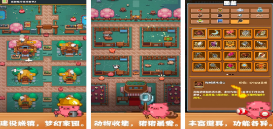 来到小猪岛屿当中有相当出色的轻松养成模式,多样化经营场景,上百只小猪等你来招募,足够轻轻松的游戏剧情,可开垦农田种植农作物,还要搭建渔场扩张个人的小岛规模,在离线的情况下,小猪们会继续工作生产资源,在上线时各类资松收割源,让能够所有玩家都能享受轻松养成的乐趣。