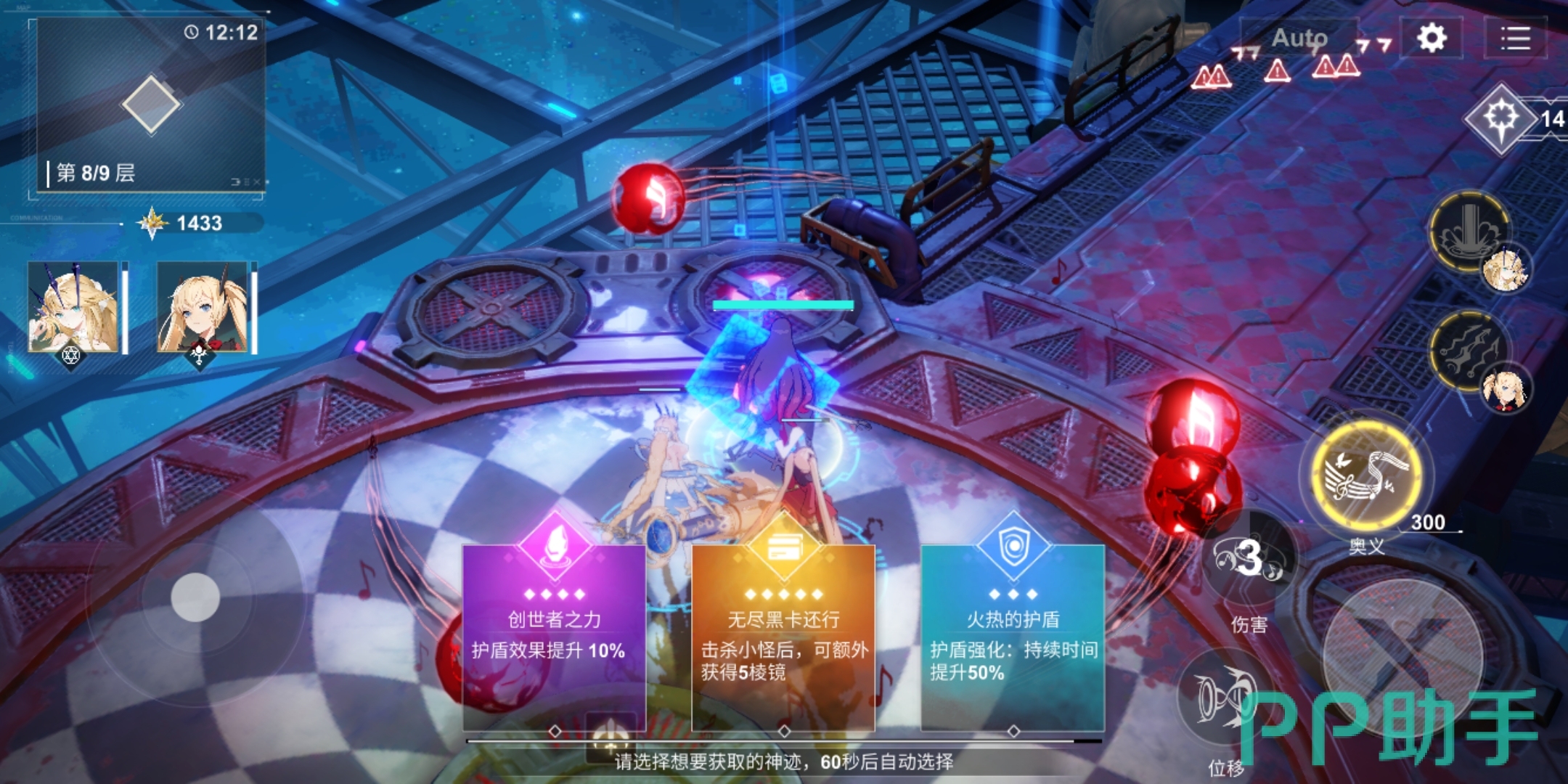 精英关卡共有9层,在第3、6、9层各有一只boss,只要成功击杀boss玩家就能获得金色神迹。金色神迹的作用只有一个:大幅强化神权的效果,神权即指技能,选择强化的技能位置要根据队伍主c确定,如莉莉丝选神权2即可。