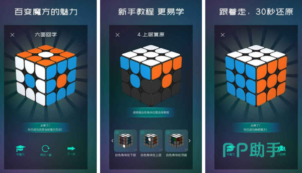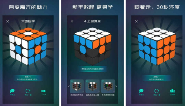 玩家在该游戏中可以从最基础的三阶魔方进行入门,从而学习各种高阶的四阶,五阶魔方,并且这些魔方都有其详细的教学视频和步骤指导。因此家长与孩子共同学习,在学完之后还能相互比较,谁还原的更快。同时该游戏还内置3d虚拟魔方,因此支持随时暂停和回放,从而非常适合孩子们锻炼空间思维和专注力哦。