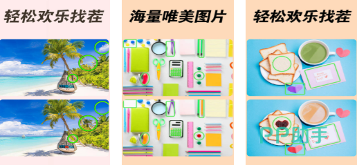 这款找茬游戏可同时锻炼朋友们的记忆力和观察力,游戏规则很特殊而且呈现出的图片也超级多,海量美图都有着与众不同的差异化地点需要找出来,挑战性十足的找茬任务加持让每一个玩家都沉浸其中,还加入了特殊的剧情渲染让这款找茬游戏更加硬核,环绕式音效加上卡通生动的美术表现都是玩家喜欢本作的原因。