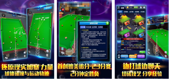 台球的快速普及已经根深蒂固走进人们的生活中,可以在闲着无聊时邀请自己的好朋友们一起走进台球厅,可以将自己的台球技术发挥到极致。snooker斯诺克游戏完美复刻了国际斯诺克的操作规则,只不过利用3d的引擎技术将真实的台球桌场景刻画的淋漓尽致。在体验这些游戏的时候,小编推荐大家在九游app当中去领取福利,九游是手游福利性价比最强的游戏盒子,也是阿里巴巴灵犀互娱旗下的产品,大平台有保障,海量游戏的礼包都可以免费领取,就比如节假日礼包或者是活动礼包都会定期进行更新。