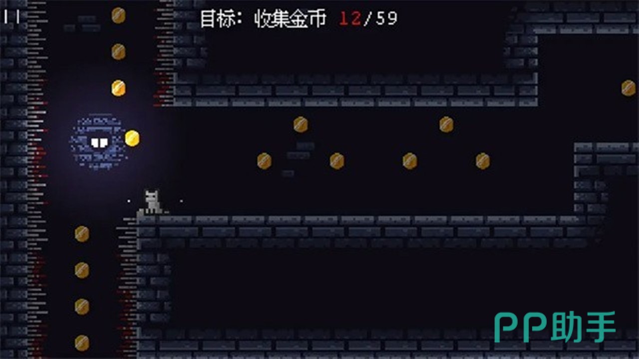 《猫猫祟祟》这款游戏中玩家将化身为一只可爱的小白猫,在横版的地图中进行冒险,过程中还可以使用跳跃键来让猫咪跳得更高并收集金币,当然,除金币以外,关卡内还有陷阱和悬崖等多种障碍物需要躲避。虽然采用的是像素画风,但关卡和猫咪的形象却很清晰,同时融入了暗黑元素,使得整个游戏看起来特别幽深。