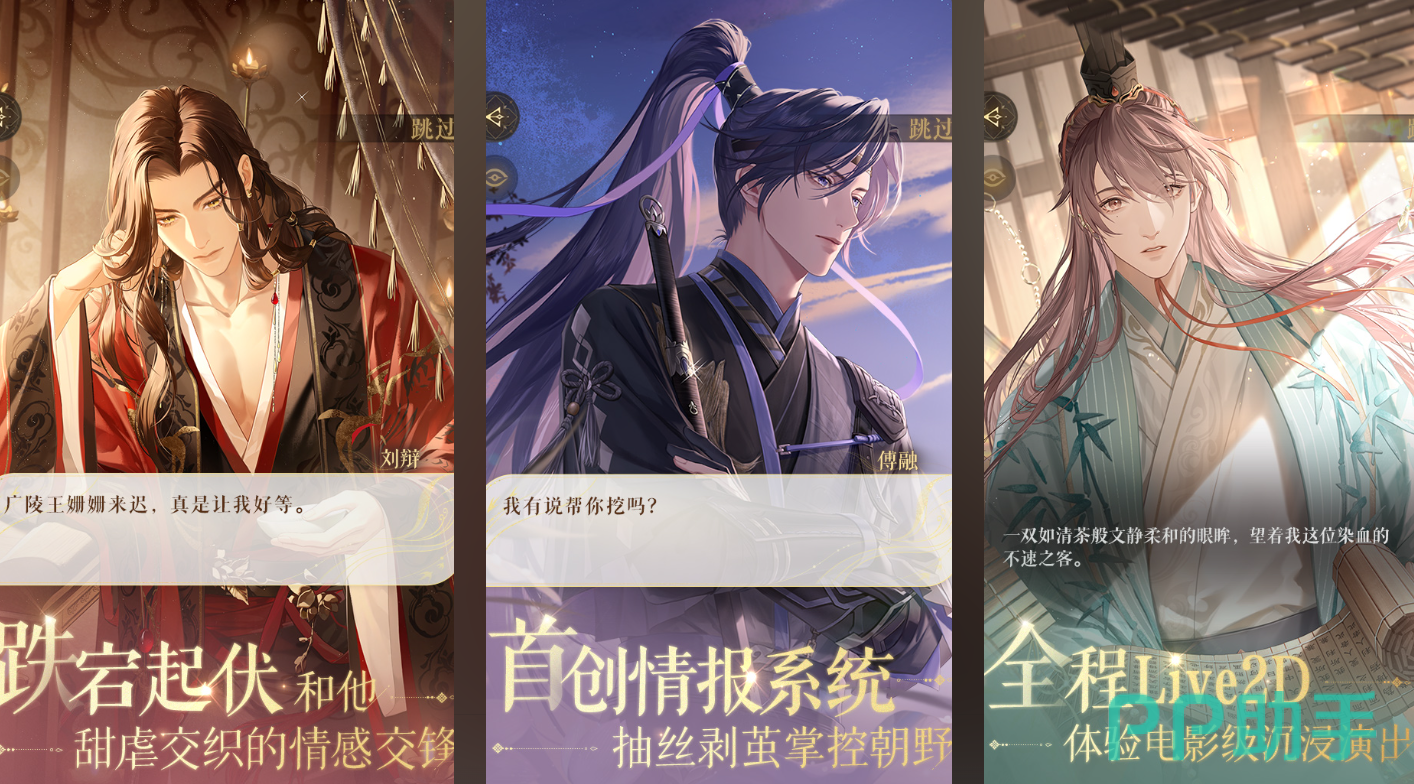 游戏背景设定于东汉末年,以女扮男装的广陵王为主角,在诸侯割据、朝纲倾颓的历史语境中展开权谋博弈。玩家需经营绣衣楼,统筹情报网络,并依据各男主角的专属天赋(如谋略、武艺、医术等)进行差异化培养。每位可攻略角色均配备完整人物小传与哲学观体系,使家国大义与个体情感形成双向映照,赋予作品鲜明的文化厚度与人文质感。