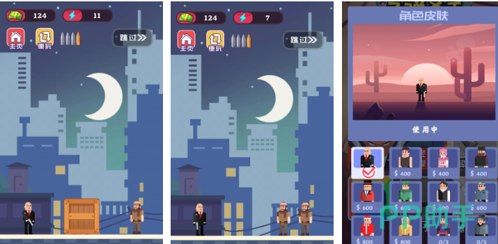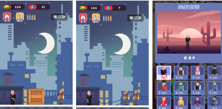 作为竖屏物理弹道射击代表作,本作独创“子弹反弹追踪”机制:发射子弹后可经墙面、障碍物多次反射,最终命中目标。每关限定弹药数量,需预判弹道轨迹与碰撞角度,加入时间减缓、穿透强化、分裂爆炸等功能性子弹Buff。角色皮肤与武器外观支持持续解锁,无付费门槛限制核心玩法完整性,操作简洁但策略深度突出,适合碎片化时间挑战高分纪录。