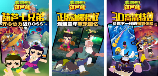 融合传统神话元素与现代跑酷机制的手游作品。玩家在3D高清渲染场景中操控葫芦娃兄弟进行横向卷轴式奔跑,通过左右滑动切换轨道、上滑跳跃、下滑闪避等方式应对蝎子精、蝙蝠怪等原著反派设置的障碍。金币与钻石用于解锁新角色及技能升级,强化角色成长路径。