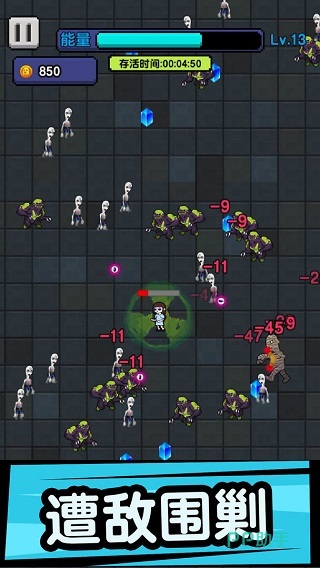 玩家操控角色在多张地图中自由移动,目标是持续击败怪物以获取经验值。所有攻击行为均为自动触发,适配单手操作场景。怪物被消灭后随机掉落经验,累计达阈值后角色等级提升,同步带动塔防设施强化进度与生存时间延长效果。