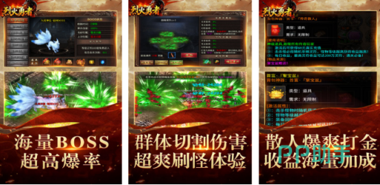 复古的传奇打金玩法,以及高爆率的核心要素全部呈现出来,还有经典的三大不同职业,任由大家随意挑选,这些职业都有独特的技能体系,让大家感受到原汁原味的职业体系。刚开始大家只是孤身一人,没有特别炫酷的武器类型或者是终极装备,但是都可通过击败怪物的方式轻松获得,就算是小怪物也有机会获得顶级的神装。还可加入到9层妖塔或者是世界boss挑战等不同玩法中。