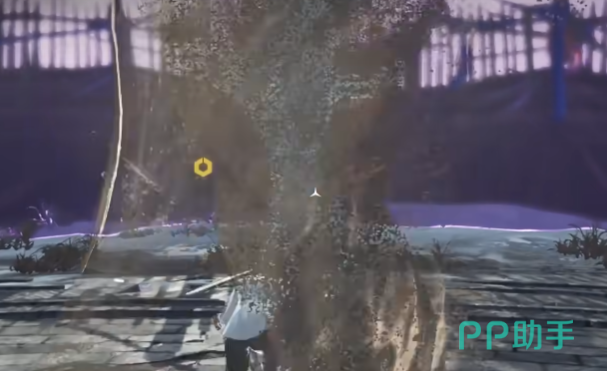【二技能:追踪沙暴】桓月原地召唤持续移动的沙龙卷,期间周期性发射高速沙刃。该技能具备明确追踪路径与固定弹射频率。推荐应对方式为保持中距离游走,利用地形卡视野规避;进阶打法可在沙刃离手瞬间连续弹反,每成功弹回一枚沙刃均可造成小幅伤害并积累输出节奏,但需注意沙暴本体仍具吸附判定,不可长时间滞留中心区域。