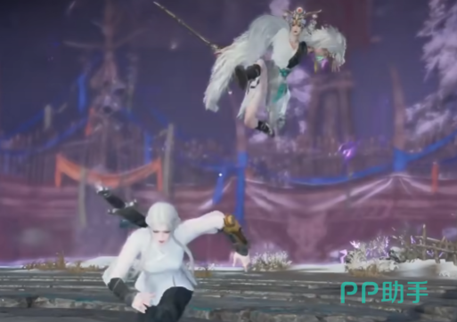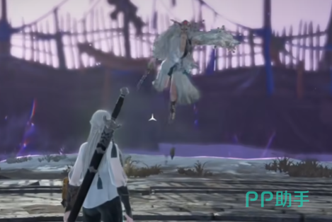 【三技能:双旋龙卷扫击】桓月单手上撩挥剑,随即生成两道横向旋转沙暴,呈扇形覆盖前方大范围区域。命中后产生强吸附效果,将角色拉向风暴中心并持续扣血。此技能无弹反判定,唯一安全解法为在挥剑抬手帧出现时立即后撤或向两侧横向位移,重点观察龙卷生成位置与旋转方向,确保始终处于双风暴夹角之外。