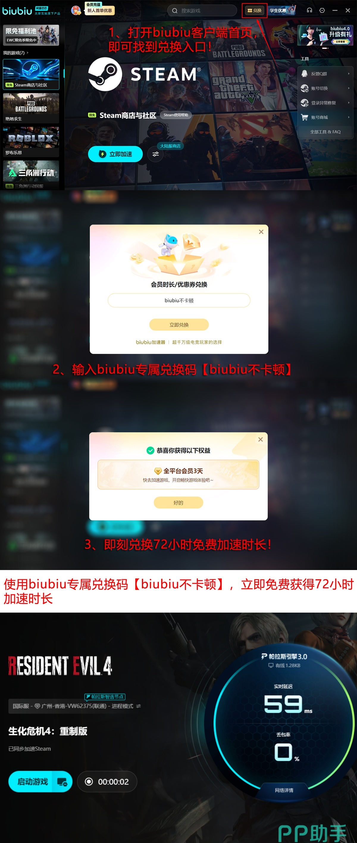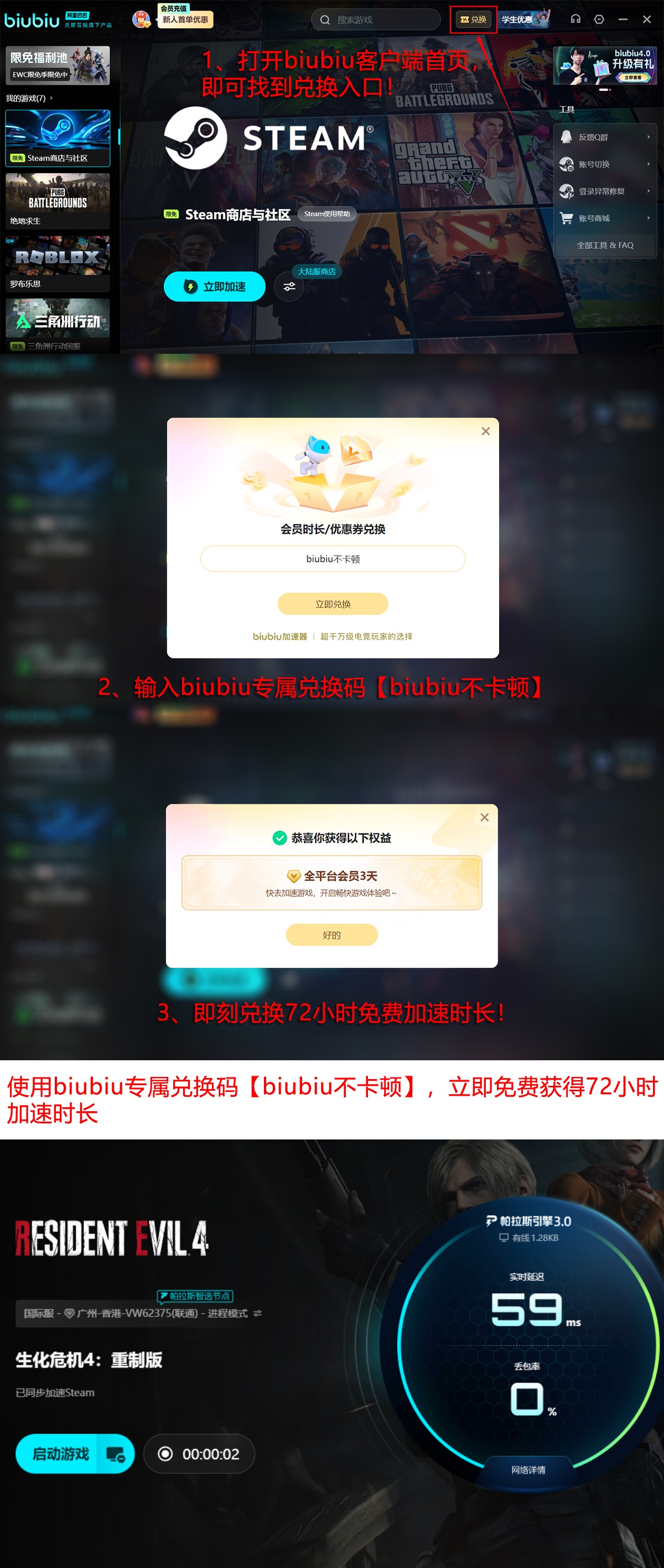那么以上就是关于生化危机4重制版卡顿如何解决的全部内容了,如果大家在体验任何一款游戏的时候遇到了卡顿、闪退之类的问题,biubiu都能提供完美的解决方案,它拥有专属网络通道,让我们每一个技能都能释放到点上。对于那些喜欢竞技类游戏玩法的小伙伴来说biubiu简直不要太友好。