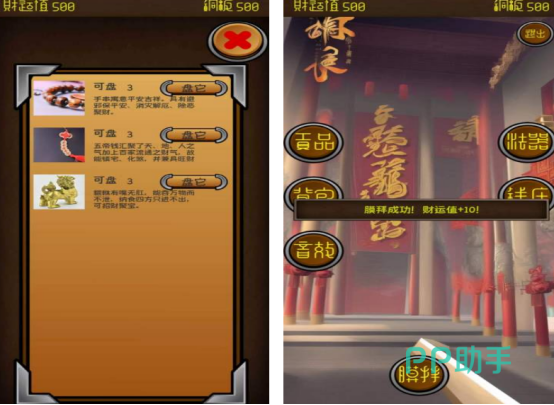 这款以电子财神为主的手游,通过拜财神的这一种方式,就能让自己获得更多的财运值,积累更多的财富存功,高度模拟了现实生活中拜财神需要准备的各种物品。比如在供品这方面,就有现实生活中的很多事物,可以利用自己所获得的财运值,解锁不同价格的食物,也能点击屏幕上的其他文字,顺利完成膜拜的任务。