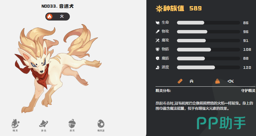 第四个为大家推荐的就是音速犬,音速犬当前作为一个火系的宠物,它自身的能力一般是在进入状态当中才会带来足够的战斗效果,因为它的尾巴也会呈现一些火焰动态,所以输出效果当中利用它的天赋专注力可以带来登场后物理数值的提升效果,只要是利用物理攻击的话,那么这里它在基础的物理效果上面会自动提升100%的输出,但是这个技能效果因为带来的百分比非常高,所以后期是只能在他登场的第一个回合里面进行触发的,但是利用这一个技能效果的加成就抵得过很多宠物的几次加成效果了,所以在此进行爆发输出的话就可以用这个效果。