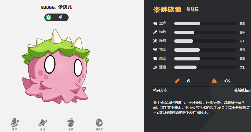 第三个为大家推荐的精灵是伊贝儿,伊贝儿是草系里面比较突出的一位精灵,它自身的伪装能力是非常强的,而且可以快速的融入到野外地图当中,所以在野外获取这个精灵的话,难度是非常高的,它的天赋效果上面有腐植循环的能力,通过这个技能效果可以让它在每次获得一点能量积累的时候,为自身带来生命数值上面5%的恢复,而且通过这样的恢复,它可以在场内提升的在场时间会更高一些,而且在草系配对当中,它拥有的灵活度配合也会更多一些。