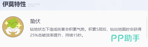 那么在受到攻击的时候就要注意,花芽蟹就算是在钻地的状态当中,也会被对面一些地震类型的效果给击中,那么后期在其他的技能效果上面,花芽蟹可以带来的是蛰伏以及蓄势待发,通过这两个特性能力,它可以在钻地状态之下造成足够输出,然后让自己积累足够的气势,在其中有5层气势之后它就会钻出地面,此时带来25%的输出提升,而且再次还会带来一定的击破概率,持续的输出时间也达到了15秒,在蓄势待发这个特性效果当中,同样也是在钻地状态下触发的,此时的话花芽蟹可以根据自己的伤害积累它本身的数值,再有5层数值之后可以快速带来50%的击破效率提升,同时带来百分8%的防护效果,这个护盾带来的能力就是他最重要的突袭技能。