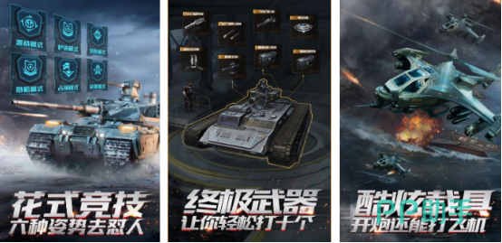 网易创作出来特别硬核的手游,作战载具特别丰富,比如有直升机或者是坦克等等,每种作战载具都有相互制衡的设计理念,而且也可以应对不同的地形地貌。大家在恢弘的战场环境当中,可以随意操控各种载具驰骋在海陆空不同的作战场景中。