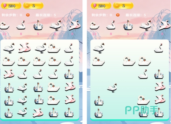游戏当中涵盖超多优雅的天鹅图鉴,利用简单的三消连线的方式,就可以获得相应的奖励,也将置身于特别唯美的游戏环境里,每一次滑动或者是展翔的时候,都能够感受到天鹅所具备的独特之处。需要在玩的时候仔细的观察屏幕上每一个天鹅的形态以及颜色,只有在规定的步数内完成连线的情况下才能够得到奖励。