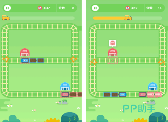 这是轻松又休闲,具有清晰画风,融入了小火车元素的手游,你需要做的就是在游戏的轨道当中,不断的利用调整方向的方式,保证两辆货车并不会发生撞击,而是能够顺利到达目的地的情况下,就能够通过关卡。比较适合各个年龄段的玩家进行挑战,如果可以在玩的时候掌握一定时间的话,那么就可以在规定时间内获得奖励。