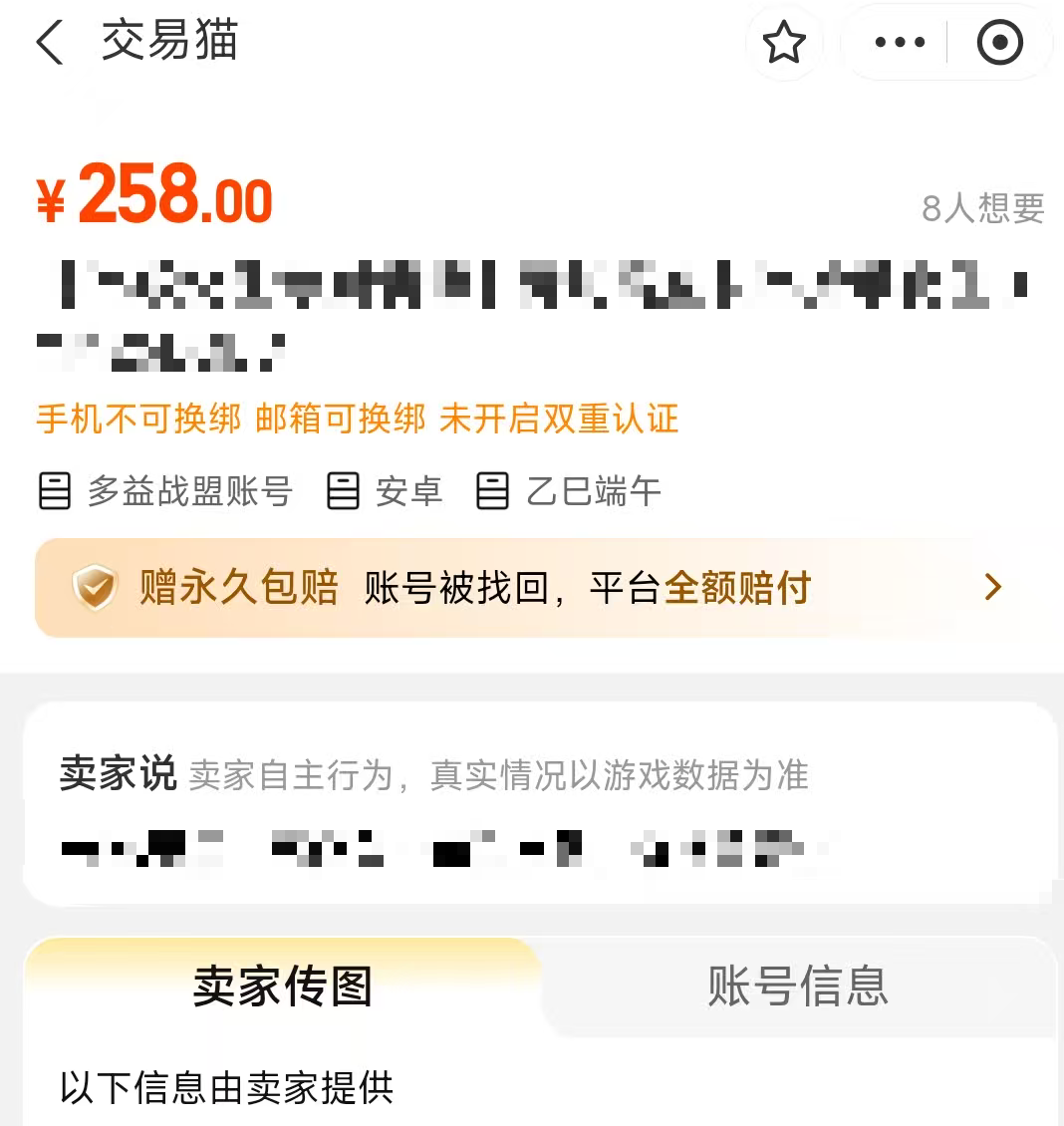 很多玩家在购买多益网络游戏账号的时候,肯定是希望内容是真实靠谱的,毕竟花费了这么多的金钱最后却发现账号是虚假的,那肯定是很难受,而交易猫的账号都是真实可靠的,而且有官方进行验号,能确保提供的账号资料是真实可靠的,再加上一个安心购的服务权益,如果后续账号出现任何问题的话,官方都会进行全额地赔付,主打一个靠谱安全,平台实现全品类游戏全覆盖,涵盖 6000 + 款各类游戏,100 万 + 件商品常年稳定在架,已累计为 7000 万 + 玩家提供专业优质的服务;而使用方式分端适配,安卓用户可点击上方按钮下载,iOS 用户直接前往平台官网即可使用。