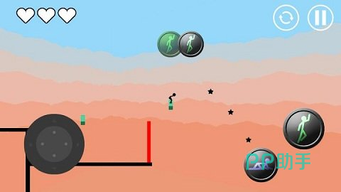 化身成为一名优秀的跑酷选手火柴人将会勇往直前,克服道路上的很多艰难险阻。火柴人会拥有不同颜色的皮肤,玩家可以操控火柴人在不同高度的平台上来回跳跃,但是在跳跃的时候要把握好不同平台之间的距离,否则就会摔下去,导致游戏的失败。简约的火柴人身姿,在操控时动画效果也更加显著。