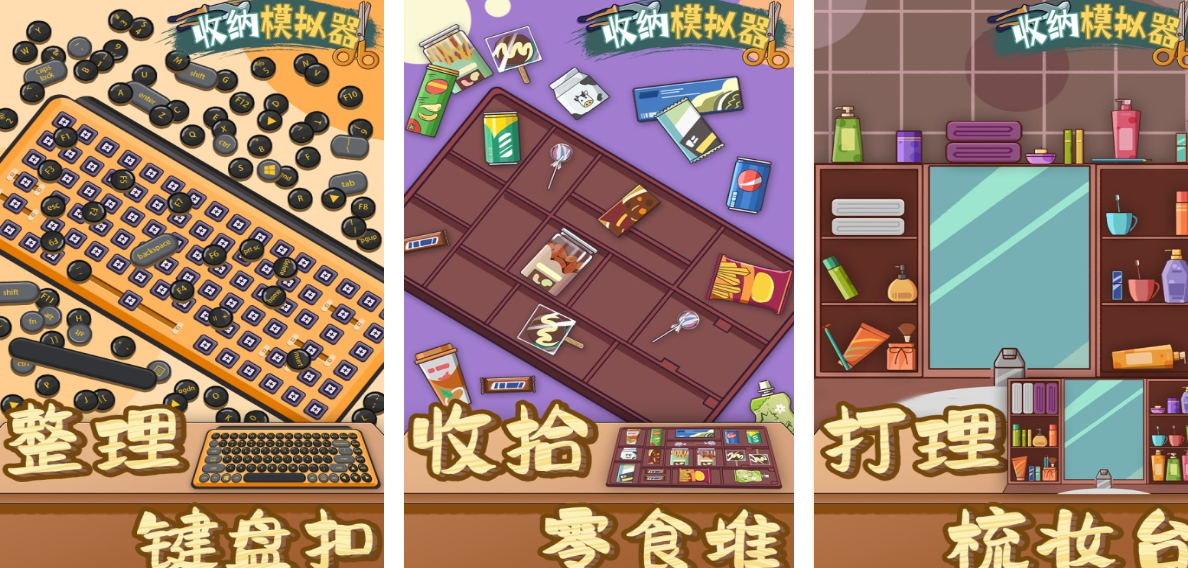《收纳模拟器》这款游戏通过全方位模拟生活中各种复杂的整理难题,主要考查了玩家的耐心和分类逻辑。玩家身处书架和化妆盒等不同的杂乱情境之中,必须依靠对物品颜色、大小或者功能属性的判断,从而形成自己独有的分类秩序。这款游戏非常强调即时决策和心理承受的能力,玩家在看到散落一地的零件的时候,必须精确判断出每个隔断的容量上限,用恰当的叠放方式来使画面保持整洁。