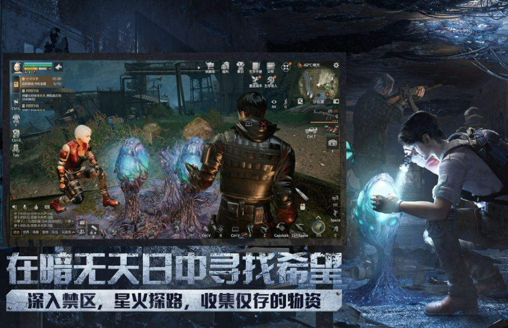 背景设定在被致命病毒摧毁的废土世界。玩家作为幸存者需要在资源匮乏、感染者横行的环境下求生,需要从收集基础材料开始,然后再制作工具和武器,搭建庇护所并升级防御设施。游戏有动态环境系统。玩家可以加入营地,和好友一起建造堡垒、争夺资源点,还能体验多人合租,四个人住在同一个屋子里抵御外敌。