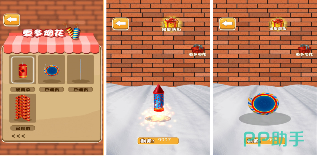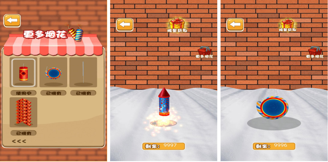 欢迎AR游戏爱好者进入这款佳作中尝试与烟花互动,烟花秀一般的游戏概念加上AR镜头代入感十足,立体三维的背景建模也让烟花看上去栩栩如生,各种颜色的烟花和鞭炮道具随意使用,极为精彩的互动性也是这款烟花模拟手游的亮点,利用高清AR镜头与烟花互动的机制非常完善,第一视角燃放烟花的感觉也相当过瘾。
