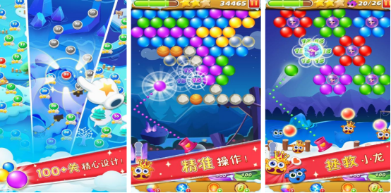 众多泡泡彩蛋都在这里集结,在传统的玩法上又进行了全面创新,需要发射彩色弹珠,消除三个或者以上相同连接的泡泡,就能够完成目标关卡,提供海量关卡设计有超过上百个精心的特色主题,每个关卡都设有独特的通关条件和相应的目标,难度更是循序渐进,提供无尽模式,可持续挑战获得极高的分数。