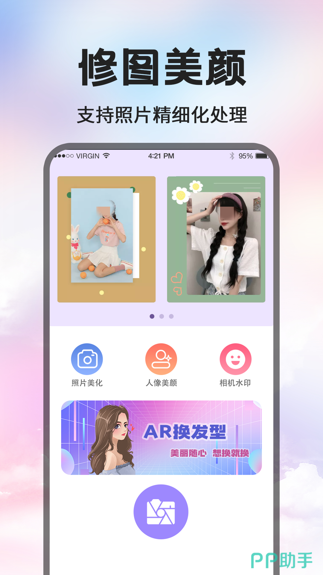这是一款功能非常丰富的软件,将照片美化、人像修图,美颜滤镜等各个功能集中起来,做到了一键直接快速生成,在制作的时候还能智能添加超百款精美的模板。这样就能轻松享受到编辑的乐趣。得到的内容还能轻松打上各种水印,这样就不用担心别人照搬自己的作品了。