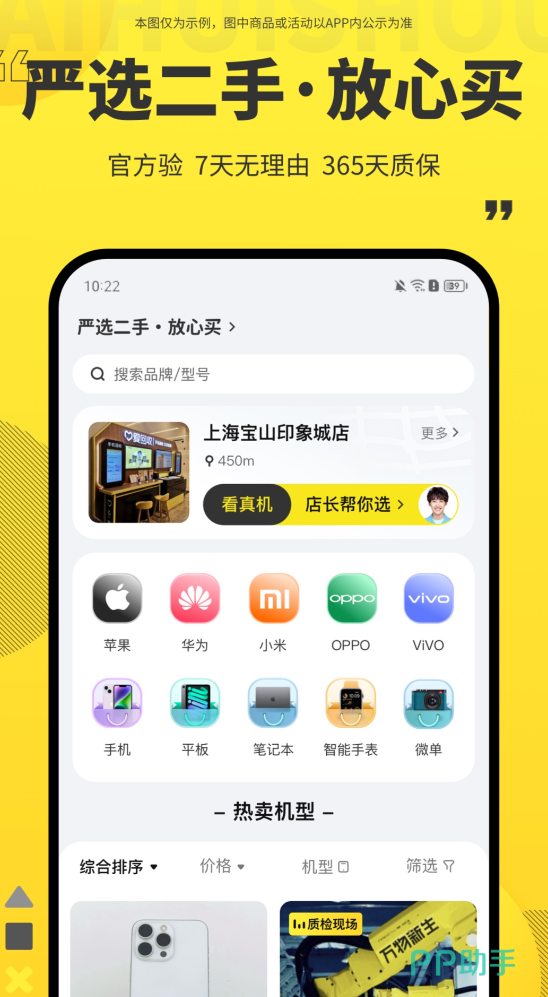非常成熟的二手电子产品交易平台,也是首先开创了先由平台验机随后发货的,买家在购买手机之后,能够先获得手机全面的检验报告,且直到拿到手机之后依然能够享受到365天的质保服务,因为平台二手手机资源众多,价格相比较其他地方也会更低,在同价格下有非常高的性价比。