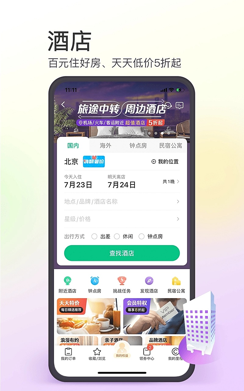 携程是国内头部综合旅行平台,携程的酒店资源库非常庞大和稳定,从连锁品牌到高端酒店覆盖全面。处理问题响应非常及时,对于安排重要或复杂的行程能提供可靠保障。下单还能累积会员积分,能兑换不少实惠哦!