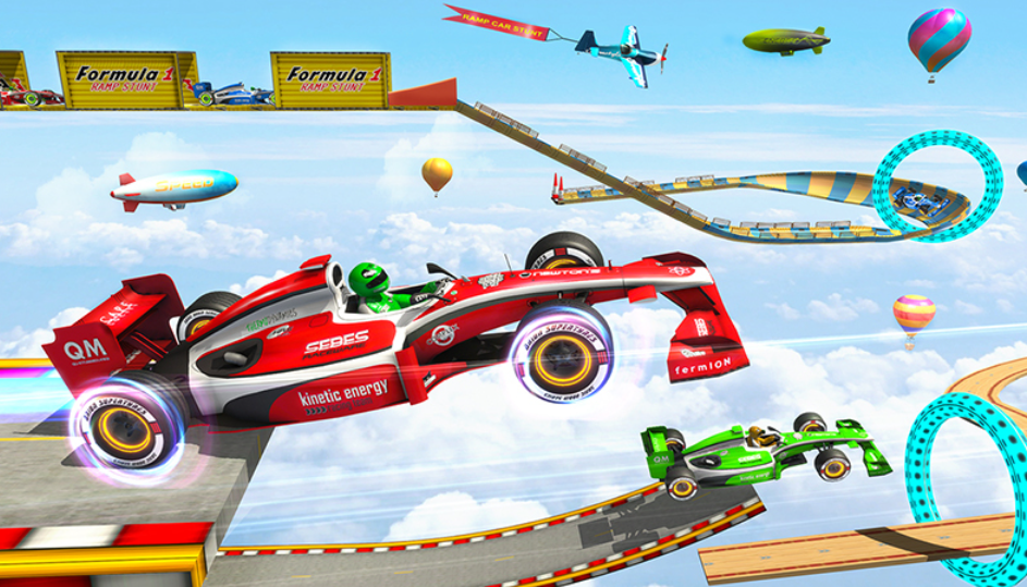 这是一款强调操控精度与动作表现的单机向竞速产品。虽非严格F1规格,但其赛车建模参照一级方程式空气动力学特征,配备可变形扰流尾翼与碳纤维底盘结构。游戏支持翻滚、漂移加速、空中转体等十余种特技动作,每个动作触发均有独立判定逻辑与视觉反馈。地图采用模块化设计,含城市立交、沙漠峡谷、冰雪高地等主题场景,所有赛道均支持昼夜循环与动态障碍物交互,考验玩家在高速中的预判与应变能力。