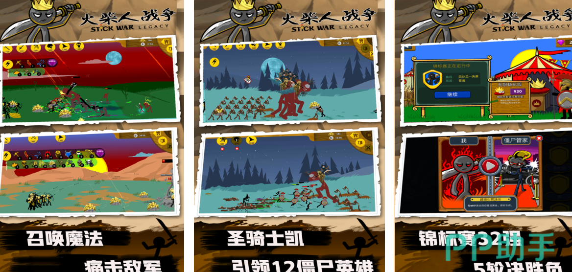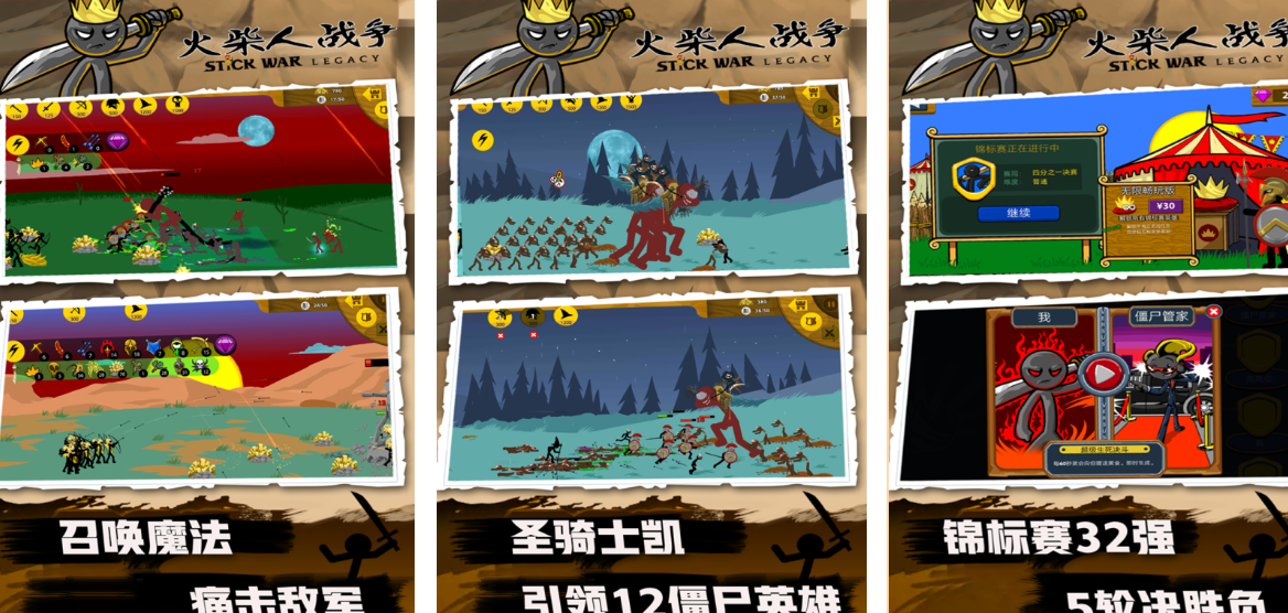 本作融合资源采集、兵种养成与实时战场指挥机制。玩家担任国家统帅,通过开采黄金等基础资源构建军事体系,麾下包含矿工、剑士、弓箭手、长矛手四大基础兵种,彼此存在明确克制链(如弓箭手克制剑士、长矛手克制骑兵等)。战斗采用横版即时演算方式,需根据敌方阵型结构动态调整己方部署与技能释放时机。随着战役推进,可解锁科技树分支,提升士兵生命值、攻击力、移动速度及特殊技能等级,形成差异化成长路径。