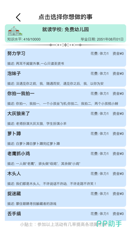 本作以沉浸式人生推演为核心,玩家可自主塑造角色成长轨迹——从情绪管理、社交能力到职业进阶,每一项属性变化均影响后续事件触发。游戏高度拟真地复刻现实社会结构,涵盖人际关系维系、资产配置、健康状态等真实生活要素;界面布局简洁直观,操作响应清晰明确,新手亦能快速上手。