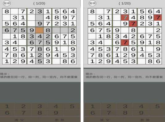 本作以“回归本质”为设计理念,专注呈现最正统的数独体验。除常规九宫格(1–9)外,同步提供六宫格(1–6)模式,适配碎片化时间练习。所有题目经多重验证,确保全局仅存在唯一解。操作层支持长按填数、滑动切换候选、单击清除等手势,错误填写即时标红提示,并允许无限次撤销,大幅降低试错成本。